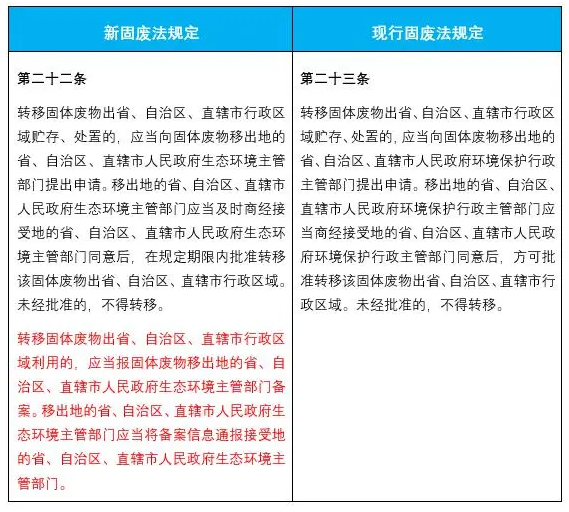 2.增加了跨省轉(zhuǎn)移固廢利用的,需報(bào)移出地生態(tài)環(huán)境主管部門備案的要求