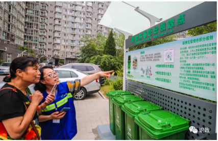 朝陽區(qū)白領家園小區(qū),志愿者指導居民分類投放垃圾