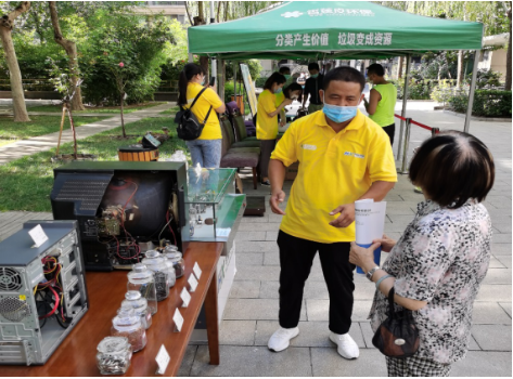 在北再生集團(tuán)的攤點(diǎn),居民用廢舊電器即可換取兌換券,再憑券換取米面油等生活用品。工作人員還提供免費(fèi)回收大件垃圾服務(wù)、幫助社區(qū)清理“僵尸自行車”,贏得了居民點(diǎn)贊~